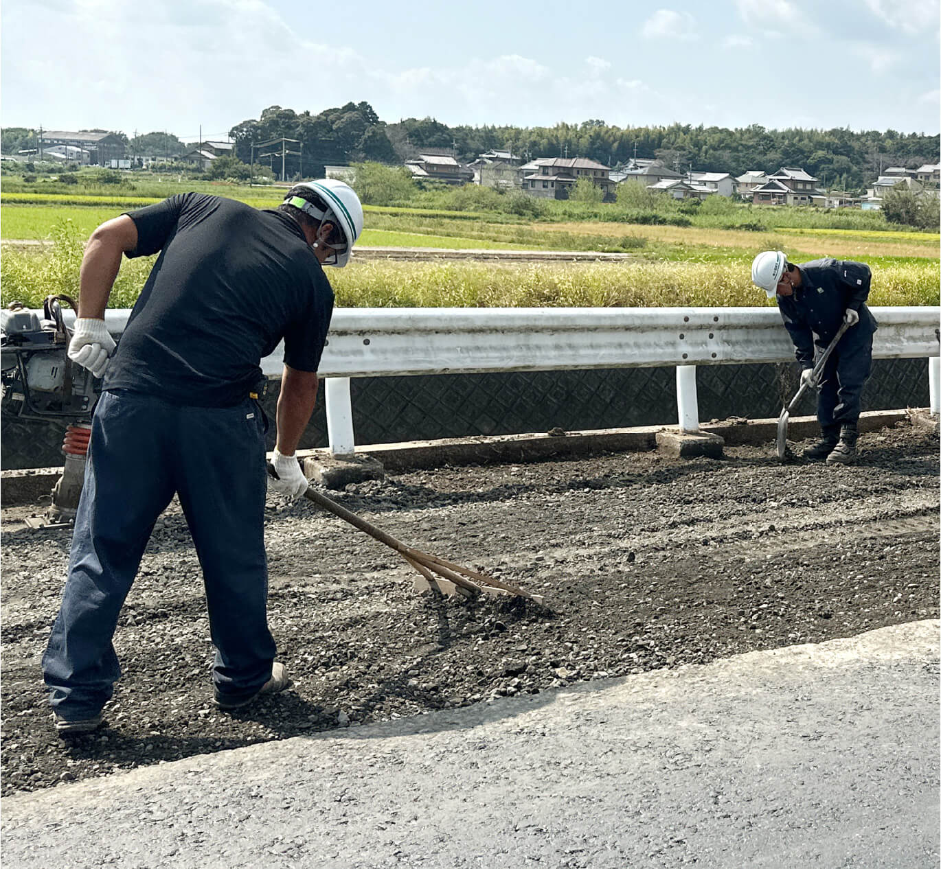 未経験者大歓迎!まずは現場の掃除をしたり、「レーキ」と呼ばれる道具で材料を平らに均したり、補助的な作業からお任せします。